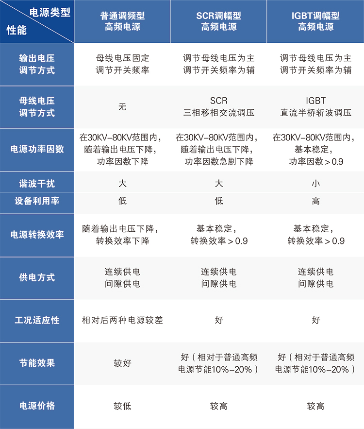 相比于普通調(diào)頻型高頻電源,|GBT調(diào)幅型高頻電源除了具有普通調(diào)頻型高頻電源的切功能外,還増加了調(diào)幅回路。相比普通高頻電源,具有工況適應(yīng)性更好,節(jié)能效率提高50%,尤其對(duì)PM2.5優(yōu)勢(shì)明。